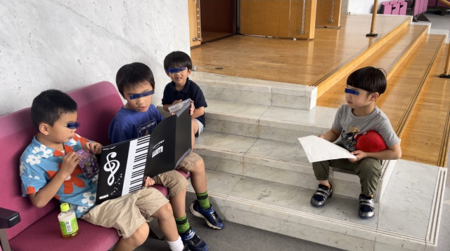 いつもはグループレッスンに参加していない大学生の生徒たちも一緒に初めて全員で合奏や斉奏曲の音合わせ、立ち位置の確認を入念に行いました。