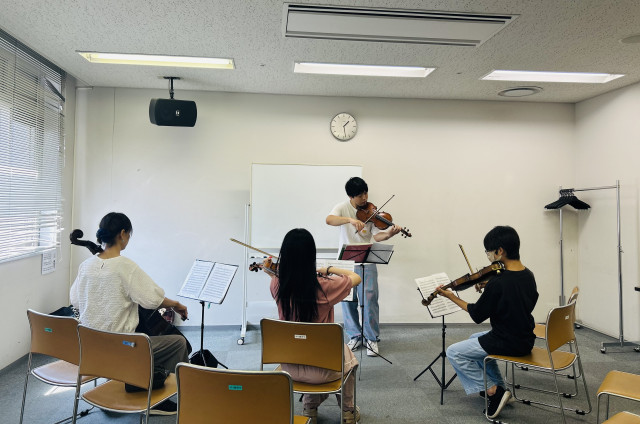 前半は1stバイオリン・2ndバイオリンに分かれ【糸巻き】を練習しました。