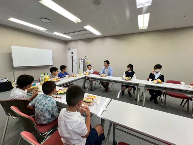 会が終わってリラックスモードの生徒たち、ジュースとお菓子で乾杯🍹