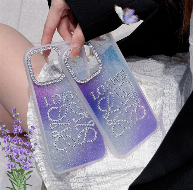 キラキラ可愛いロエベ風iPhoneケース最新作。ケース背面のキラキラグラデーションカラーデザインはおしゃれでモダンな雰囲気を演出します。ラインストーンで飾られたロエベのブランドロゴをあしらい、さらにカメラ穴もラインストーンで囲まれて、持っているだけで目を引きます。可愛い雰囲気を追い求める女性の方々に大人気!