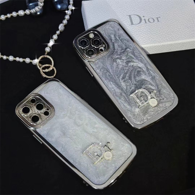 女性の心をくすぐるDior風iPhoneケース。ラインストーンで飾られたD型のブランドロゴモチーフをあしらい、背面にもラメ入りでキラキラおしゃれに見えますし、上品で華やかな雰囲気を演出。カメラレンズ周りが花デザインになるのはポイント!持っているだけで目立っちゃうお洒落なアイテムです。