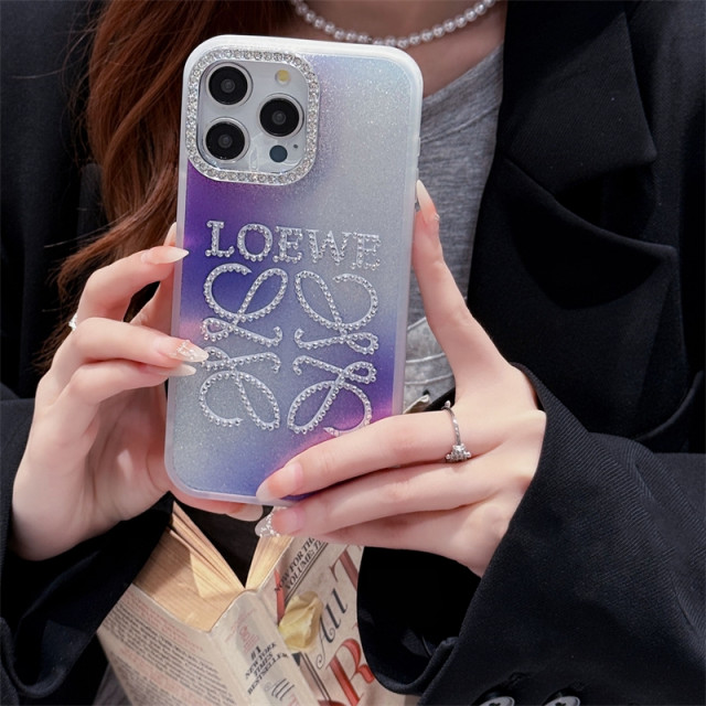 キラキラ可愛いロエベ風iPhoneケース最新作。ケース背面のキラキラグラデーションカラーデザインはおしゃれでモダンな雰囲気を演出します。ラインストーンで飾られたロエベのブランドロゴをあしらい、さらにカメラ穴もラインストーンで囲まれて、持っているだけで目を引きます。可愛い雰囲気を追い求める女性の方々に大人気!
