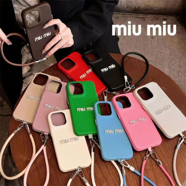 ストラップ付きのミュウミュウ風iPhone16ケース新作登場。レザー調のケースにミュウミュウのブランドロゴをあしらい、ラインストーンがキラキラで高級感が溢れます。全10色があり、お好きにお選びいただけ、大人女性にぴったりです!