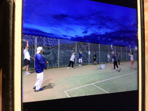 「サマーナイターレッスン2025in長坂」。一般市民向けに白州テニス部が主催している。コートは初めて長坂コートを使わせてもらった。二面に6基の照明塔が付き、今までで一番明るいナイターコートだった。午後7時から2時間だが、まだ空は明るく、夕焼けが見られた。一般市民対象(初心者6名、中級者6名)だったが、9名(うち二人は部員)と少ないものの、ほとんど中級者。昨年みたいに小中学生の応募はなかった。参加者が少ないので、初心者コーチの都合が悪くなったこともありSコーチが全員の面倒をみることになった。 若い20代夫婦の参加があった。男性は中学高校と硬式テニス部で6年のブランクがあったというが、慣れてきた後半はバシバシスピンボールを決めていた。今日は休みだったが、今月末は無料体験希望で水曜練習会に参加することになっている。ぜひ入部してほしい。開始2日前に参加を申し込んだAさんがいた。所属する支部長から話を聞いたらしい。前日の夜に電話があったので「明日は30分早く6時半に来てください」と告げた。翌朝、7時前にショートメールがあった、コートに来ているが誰もいないという。