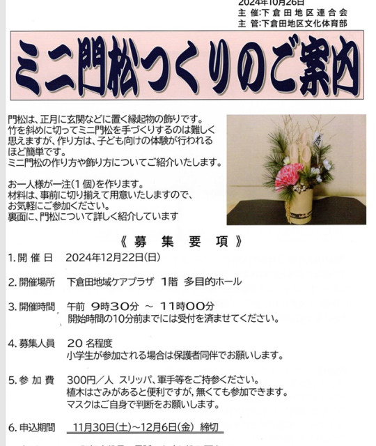 202411-06 【ミニ門松つくりのご案内】(主催:下倉田地区文化体育部)