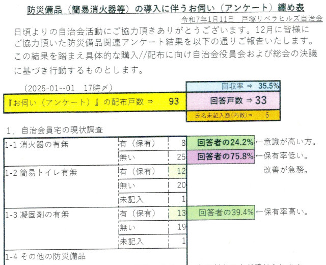 202501-03 簡易消火器導入に伴うお伺い事項(アンケート)集計結果