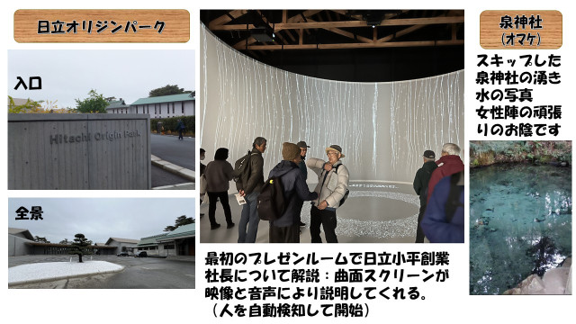 次は、道を隔てて大甕神社の反対側にある日立オリジンパークを訪問。日立製作所の創業から現在までの歴史や製品紹介、復元された創業小屋などが展示されており、グッドデザイン賞を受賞した建物とのこと。