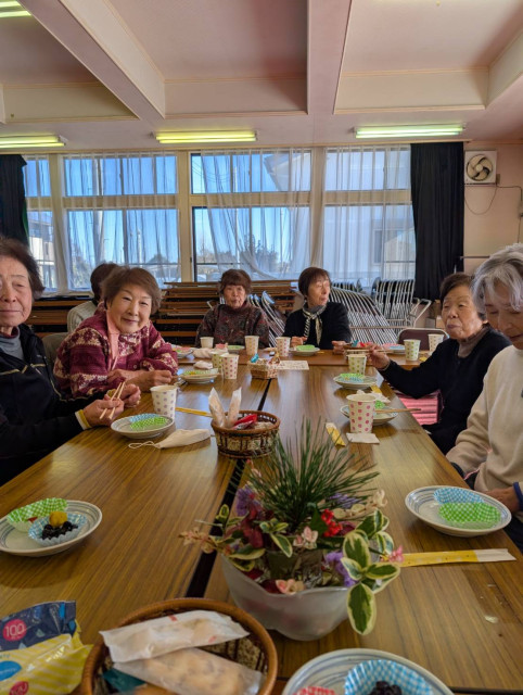そのあとは、いつものように「おしゃべりタイム」。テーブルを囲み、若き日の正月の過ごし方や食べ物の変化、初夢の紹介など笑い声が絶えない楽しい時間でした。