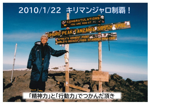 なんと、アフリカ大陸最高峰・キリマンジャロ(標高5895m)への登頂を果たされたのです!(※補足参照)。