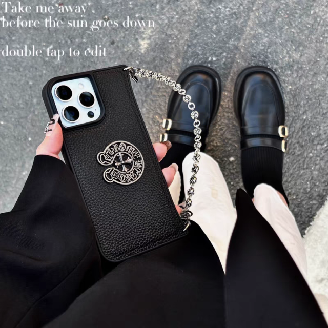 世界中の有名人やシルバーアクセサリーファンを虜にする「クロムハーツ」。Chrome Heartsロゴが特徴的なIPhoneケース登場しました。クラシックな格好いいブラックケースにシルバーのチャームとチェーンバンド設計され、持つだけでクールな印象を引き出します。レジャーでもビジネスでも、高校生でもサラリーマンでも男女ともお使えます。