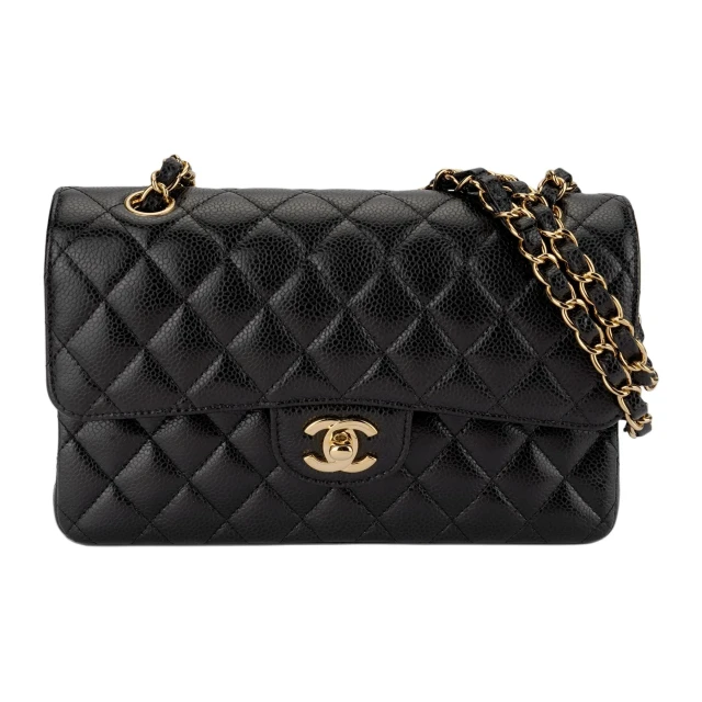 シャネル クラシックダブルフラップ キルティングキャビアレザー ゴールドトーン スモール ブラック