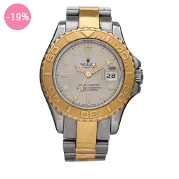 画像には、ロレックスのヨットマスターが写っています。ステンレススチールのケースとブレスレットが使用されており、シンプルで洗練された印象です。文字盤はシルバー色で、バーインデックスが配されています。ベゼルは両方向回転式で、ヨットレースの経過時間を計測することができます。日付表示は 3 時位置にあります。この腕時計は、ロレックスの代表的なスポーツモデルであり、高級感と実用性を兼ね備えています。