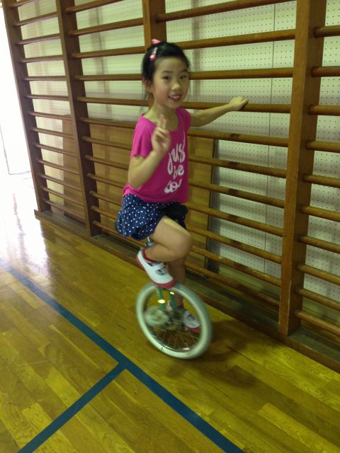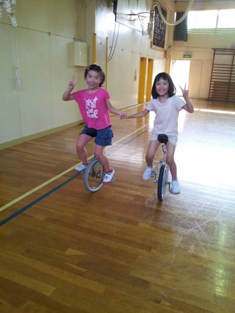 ゆーちゃんやゆほりんが自分たちから積極的に補助したりして手伝ってくれたので一日で体育館の端から端まで1人で乗れるようになりました!
