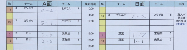 9月26日 Tリーグ(U12) 試合結果
