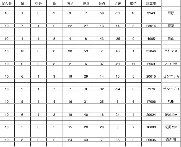 練習場所はすべて六郷小学校、土曜日は藤代小学校に変更もあり
