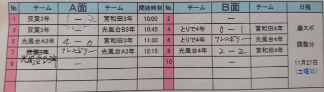 11月21日 サンデーリーグ 試合結果