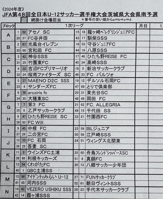 光風台イレブンはBブロックです。