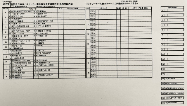 第49回全日本U-12茨城県大会県南地区抽選結果