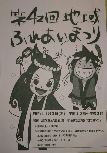 11月3日(木)AM10:00~PM15:00に三ツ池公園で行われる