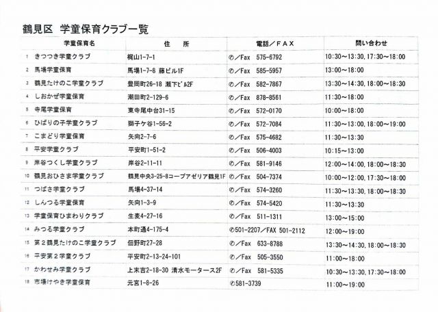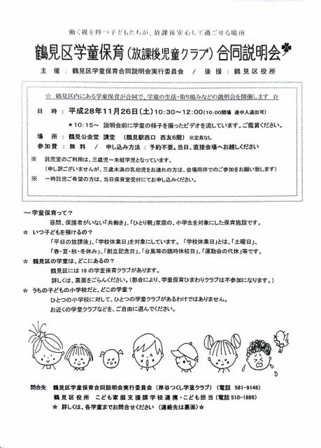 鶴見区学童保育(放課後学童クラブ) 合同説明会
