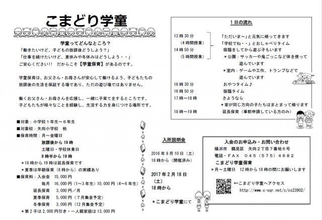 広報担当さんがこまどり学童のチラシをバージョンアップしてくれましたっ♪