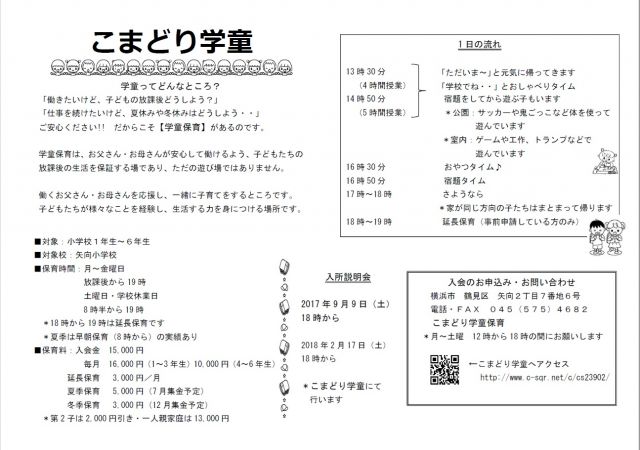 2018年度 こまどり学童入所説明会の日程が決定しましたっ!