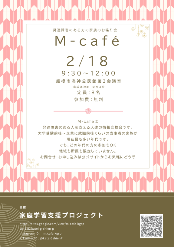 2月M-cafeは船橋市海神公民館で午前中開催です。