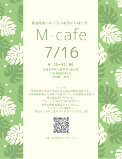 *M-cafeは発達障害のある人を支える人の情報交換会です(毎月第三水曜日開催)