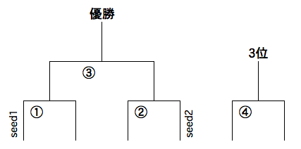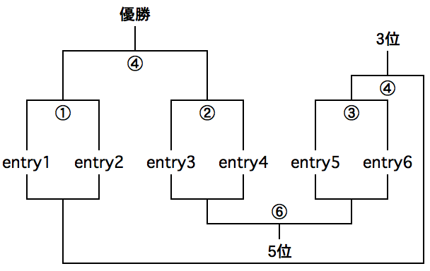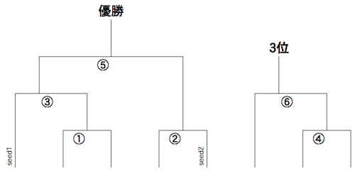④は、①・②の敗者復活戦。⑥は、③の敗者と④の勝者との対戦。
