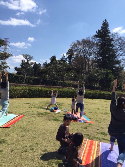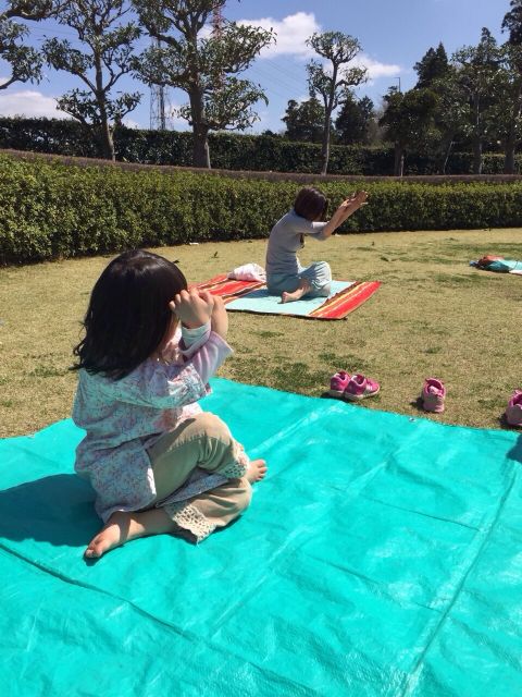 満開の桜並木を抜けた芝生広場で、大地と太陽のパワーを感じながら、風も心地よく♪