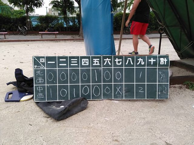 4回表からはY21さんのリリーフ登板でした。立ち上がり、アンラッキーなヒット等でノーアウト2、3塁のピンチを招きますが、後続を見事に抑え失点を許しません!その裏は、相手サードのスーパーファインプレー(H14さんの長打コースをキャッチ)もあり、中西も0点で攻撃を終えます。