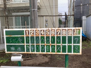 2点を先行された中西ですが、2回ウラ、打線がつながり一挙4点!また、5回ウラも4点と2回で8点。あまり点数が入らない試合でしたが、得点時に効率よく得点でき、結果は8対7と1点差でした。親善試合なため、あまりスコアを気にする必要もないですが、楽しくできたということで、参加された方々も充実感あったのではないでしょうか。