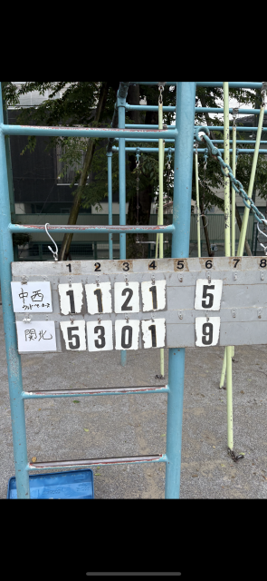 F51さんの四球J1さんH14さんのヒットで加点して最後はY12さんのレフトへのツーベースでついに同点に追いつきました。