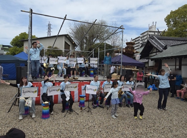 昨日の雨から一転、絶好のお花見日和の中、大阪市西淀川区の姫嶋神社で開催された「姫嶋神社春まつり」で、演奏をさせていただきました。
