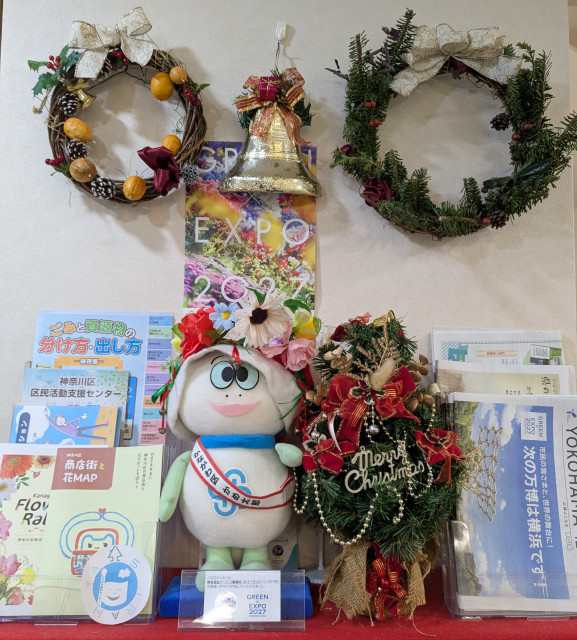 今年の練習も残り2回。いつも練習で使用する白幡地区センターにいるかめ太郎(神奈川区のキャラクター)は花博仕様でした。