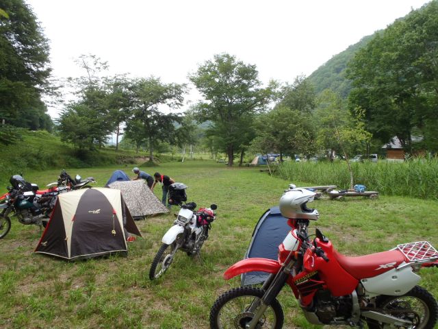 今回は新車で初林道の人やキャンプ初の人もいたりして、転んだり荷物を落としたり。
