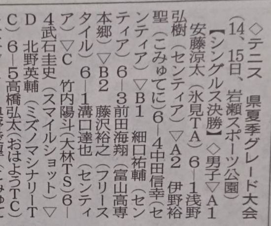 8月14日の県夏季グレードテニス大会 男子シングルスDクラスでミズノマシナリーTC所属の北野さんが優勝されました。