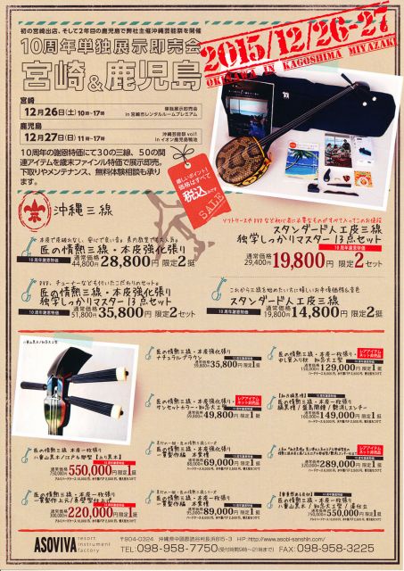 宮崎市レンタルルームプレミアムで、ASOVIVAさんの三線展示即売会が