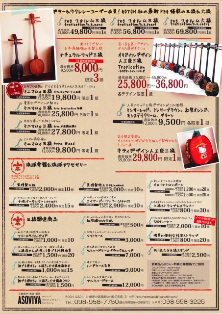 あります。メンバーさんも持っているASOVIVA三線。グッズやメンテも
