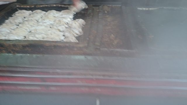 当然ながら、御替わりをしました。一一時半ごろからは激込です。お持ち帰りの人が、それこそタライ一杯くらい買っていきます。七つある鉄板が追い付きません。