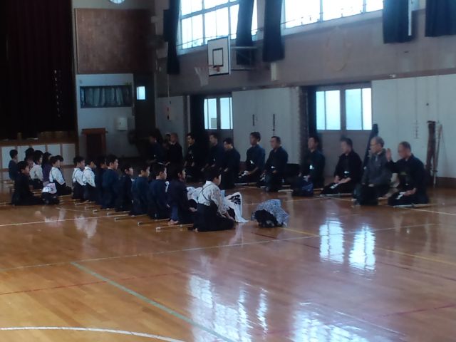 小学生12名 中学生2名が前半を基本稽古、後半は木村先生と6名の一般の先生に2分づつ掛かり稽古をつけてもらいました。