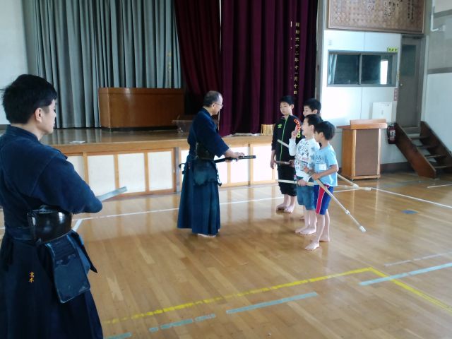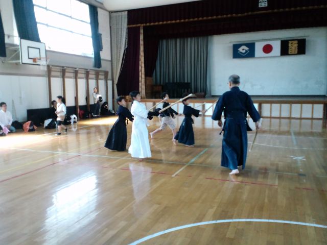 嬉しい事に新しいお友達が2名(千代田小学校の5年生と4年生の兄妹)防具(着装)組に入会してくれました。今日は、大谷小学校の合同稽古会に参加しているお友達もいたので、さびしい稽古会になってしまうかな?なんて心配することは無用でした。青島先生のご指導のもと、元気いっぱい!頑張ってました。