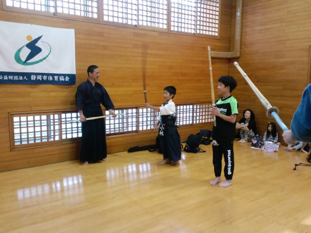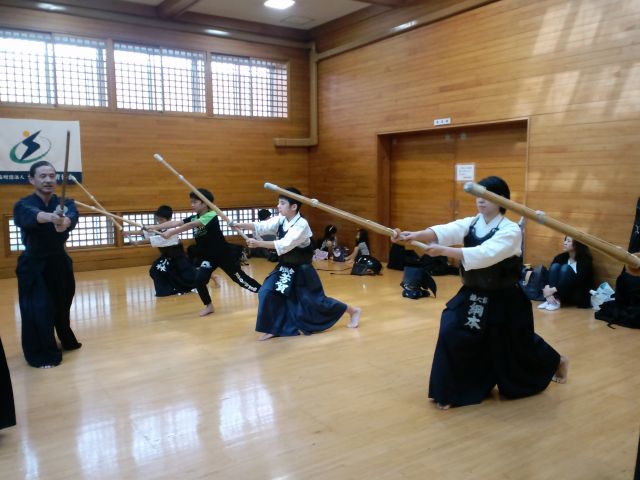 佳都、優大、翔一の小学生3名 青島先生のご指導で左手の重要性と踏込み足を意識しての打ち込み稽古に{emoji index="162"}汗を流していました。
