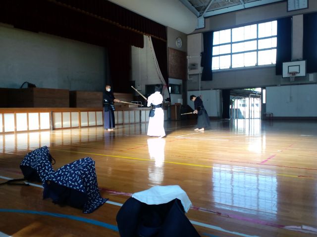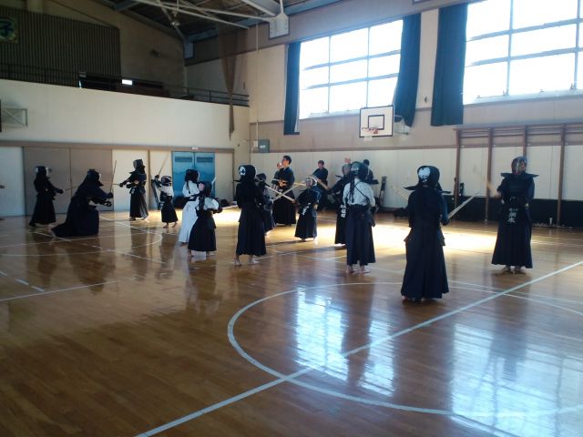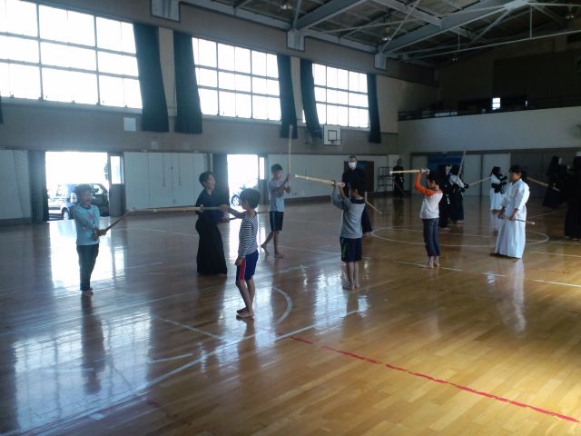 に混じり高校生のお姉さん1名とお父さん、お母さん剣士2名が一緒になって汗を流しています。
