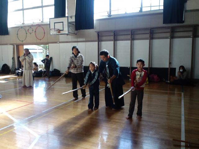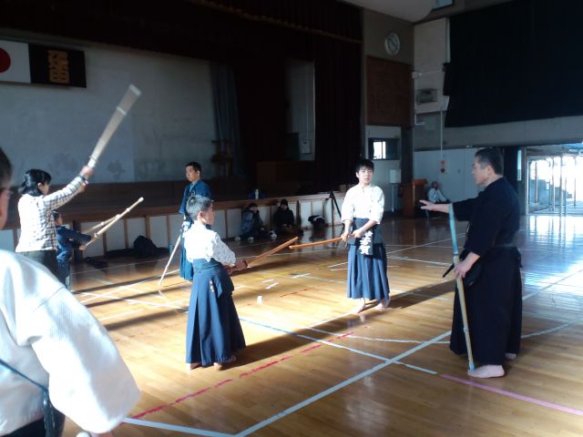 昨年晩秋に入門してくれた。海帆チャン、誠季くん、と海帆ママの3人です。私が暮れから何だかんだで稽古に参加できなかった間、他の先生方(本日は、伴野先生)に教わり大分、成長していました。{emoji index="140"}