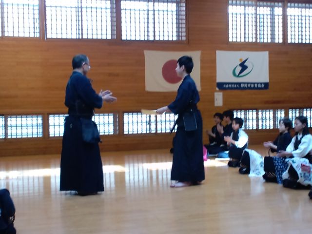 今日、稽古に来ていた翔一君に、金田先生から証書が授与されました。