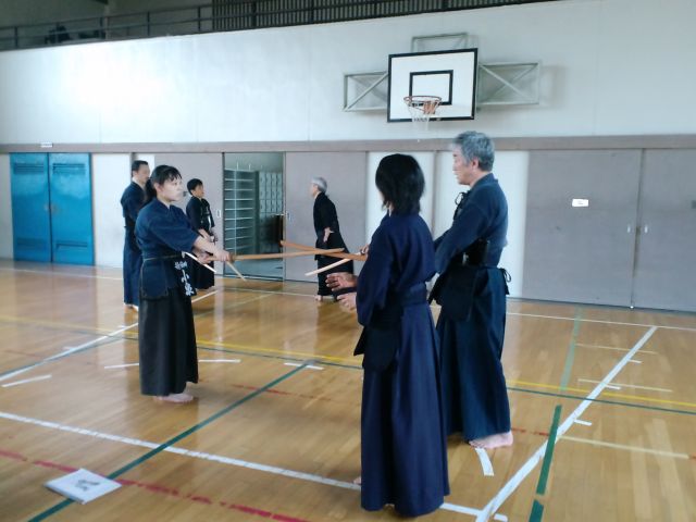 子供たちの指導が行なわれている時間 その横で、6月の昇段審査に向けて剣道形の稽古をしている方々です。