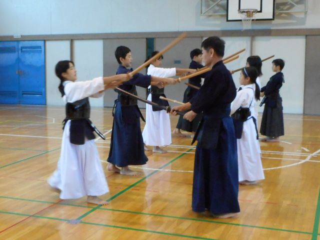 いつものように準備体操の後、金田先生の指示で、足の強化訓練を行いました。防具を着けていない子から一般の方までが、同時に楽しみながら行えたのがすごく良かったと思えました。おかげさまで今日は、内股の辺りが筋肉痛です。{emoji index="207"}情けない!