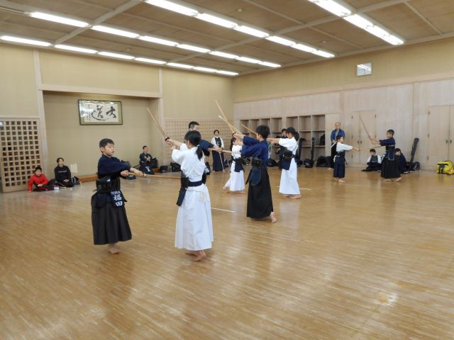 基本組の小学生2名が防具を付けて基本打ちの稽古に臨みました。まだ、「面」は被らずに行いましたが、一歩前進ですね。{emoji index="248"}頑張れ{emoji index="160"}