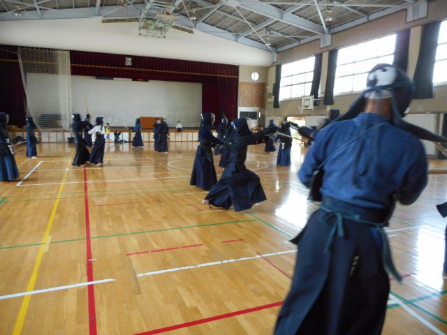 最初の切り返しからその後の基本稽古も初めは、「大きく!強く!」その次に「速く!軽やかに!」と緩急をつけてその感覚を身体に覚えさせる実戦に基づくような基本稽古を指導していただきました。「有難うございました。」